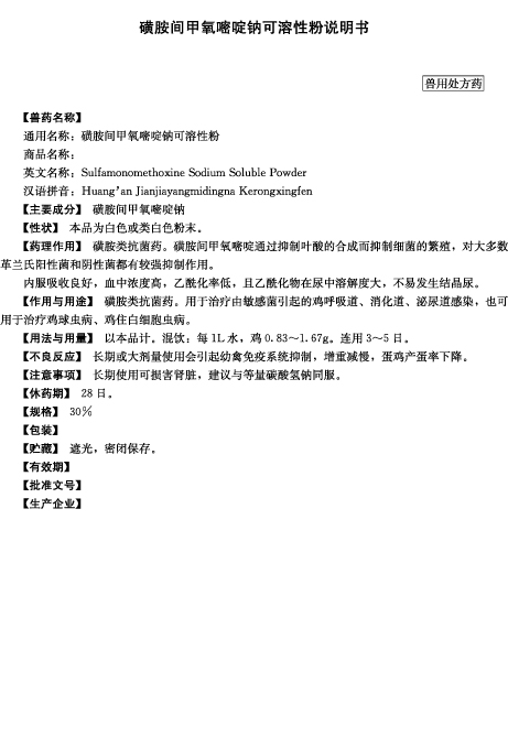 用于巴氏桿菌和大腸桿菌所致的細菌性疾病。