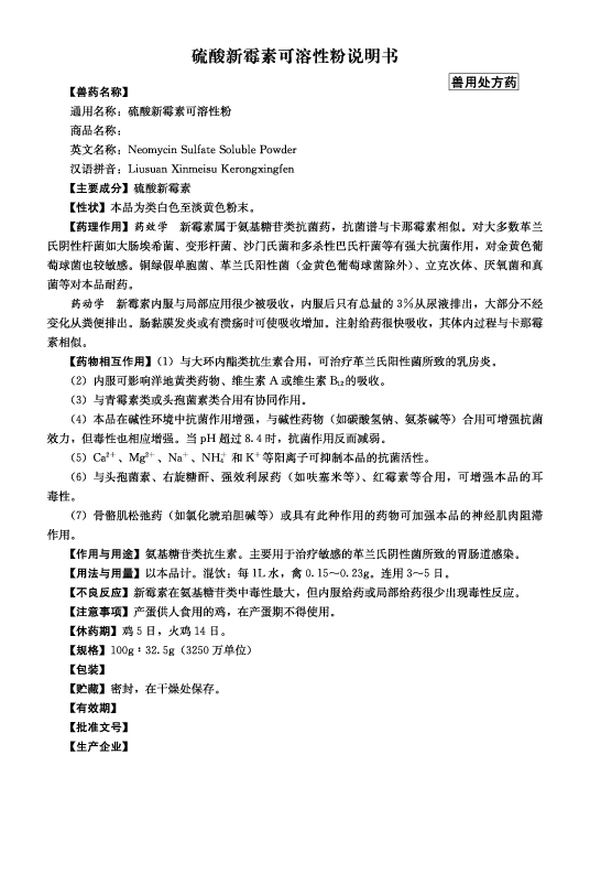 用于畜禽大腸埃希菌和巴氏桿菌感染。