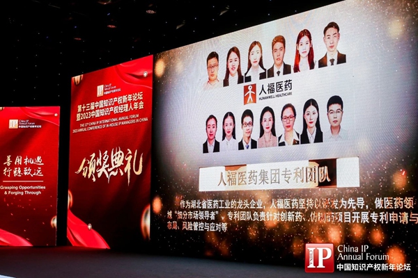 ?2月11日,“第十三屆中國知識產(chǎn)權(quán)新年論壇暨2023中國知識產(chǎn)權(quán)經(jīng)理人年會”及頒獎盛典在北京召開。本屆活動以“善用機遇 行穩(wěn)致遠(yuǎn)”為主題,全球知識產(chǎn)權(quán)行業(yè)大咖、政府代表、知名法官、專家學(xué)者及企業(yè)知識產(chǎn)權(quán)經(jīng)理人等參加盛會。在頒獎盛典上,人福醫(yī)藥集團專利團隊獲評“2022年度中國杰出企業(yè)知識產(chǎn)權(quán)管理團隊”,知識產(chǎn)權(quán)經(jīng)理劉哲獲評“2022年度中國杰出知識產(chǎn)權(quán)經(jīng)理人/優(yōu)秀獎”。
