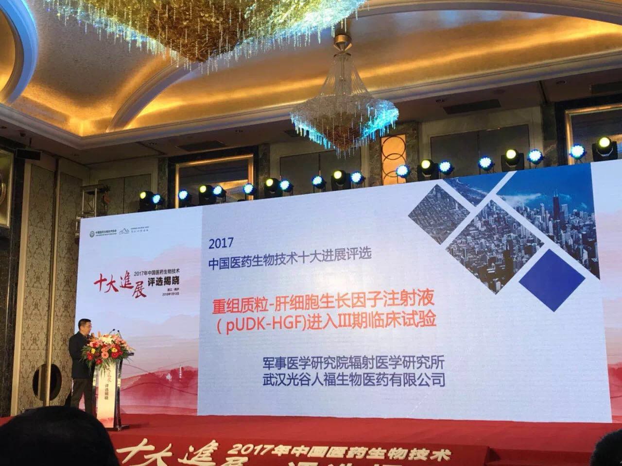 ? ? ? ? ?1月13日,由中國醫藥生物技術協會和《中國醫藥生物技術》雜志社共同主辦的“2017年中國醫藥生物技術十大進展評選揭曉”活動在浙江桐廬舉行,人福醫藥集團的“重組質粒-肝細胞生長因子注射液進入Ⅲ期臨床”項目最終入選。出席本次活動的嘉賓有評選專家團代表魏于全院士、程京院士,主辦和承辦單位的領導、投資人和企業家、中央及地方十余家媒體記者。