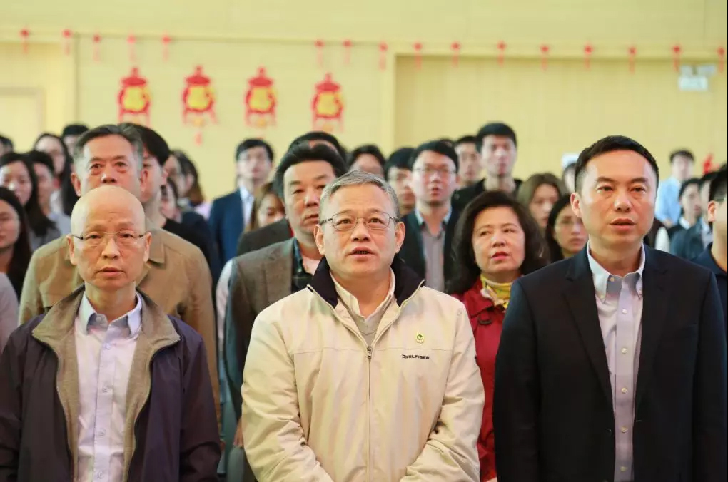 上午9:30,當代集團黨委副書記、紀委書記徐家全宣布專題報告會正式開始,全體起立,高唱國歌,現場莊嚴肅穆。