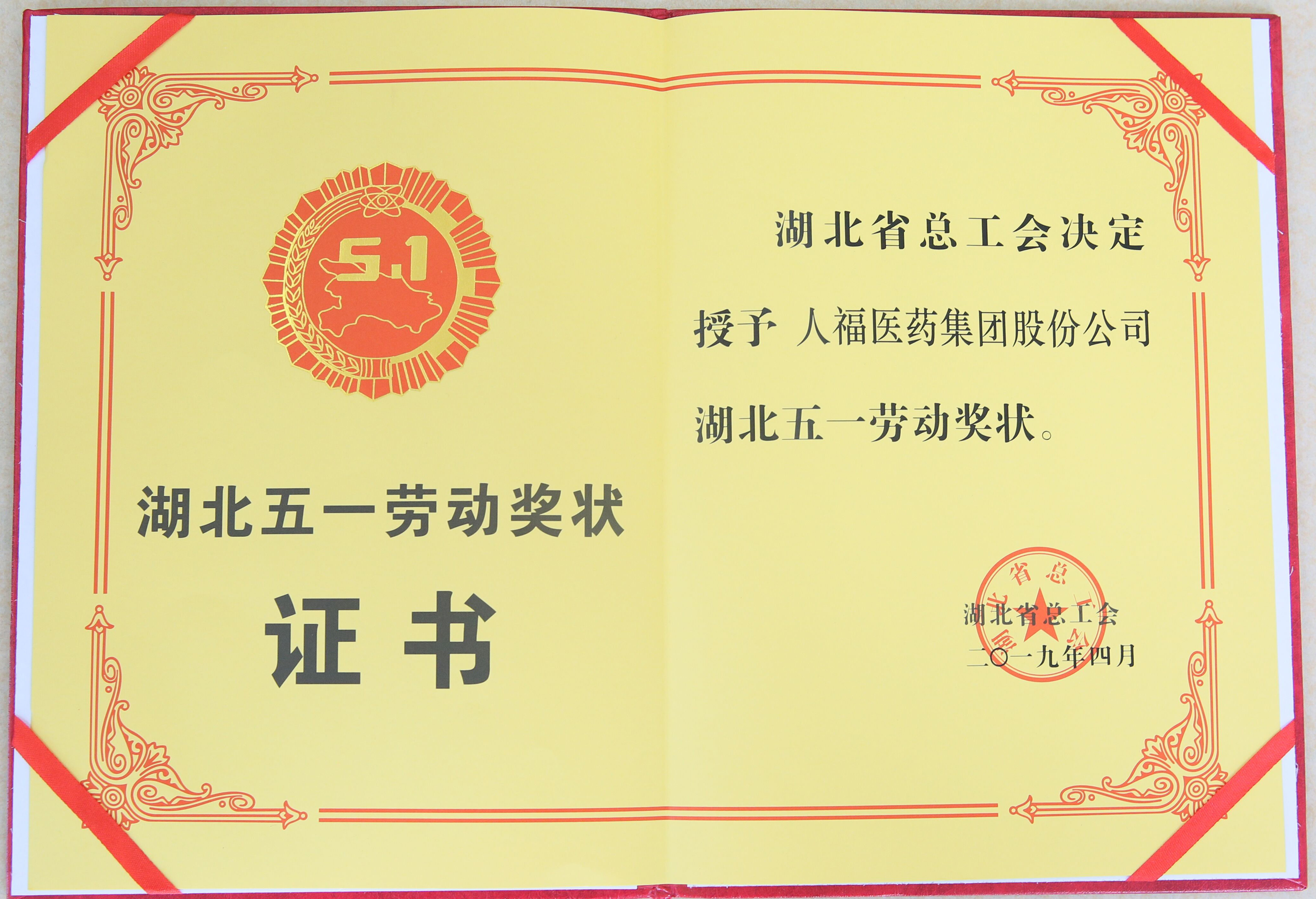 ? ? ? ? ? ? ??4月24日上午,湖北省慶祝“五一”國(guó)際勞動(dòng)節(jié)暨表彰大會(huì)在洪山禮堂舉行,宣讀了《湖北省總工會(huì)關(guān)于表彰2019年湖北五一勞動(dòng)獎(jiǎng)和湖北省工人先鋒號(hào)的決定》,并向獲獎(jiǎng)的先進(jìn)集體和先進(jìn)個(gè)人代表頒獎(jiǎng)。人福醫(yī)藥集團(tuán)榮獲“湖北五一勞動(dòng)獎(jiǎng)狀”。