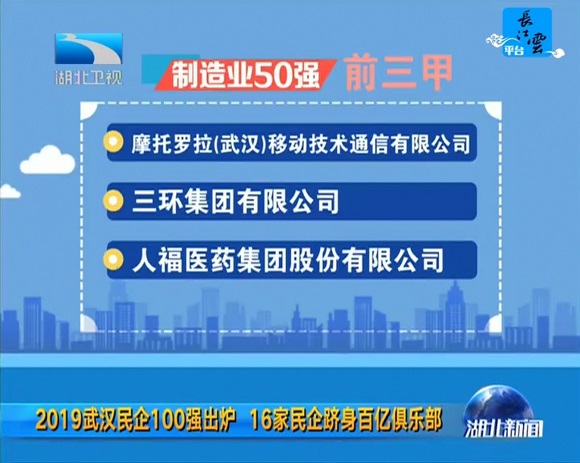 ? ? ? ?7月29日,2019武漢民營企業100強、武漢民營制造業企業50強排行榜正式發布。人福醫藥集團再次入圍,榮膺武漢民營企業100強第14位、武漢民營制造業企業50強第3名。
