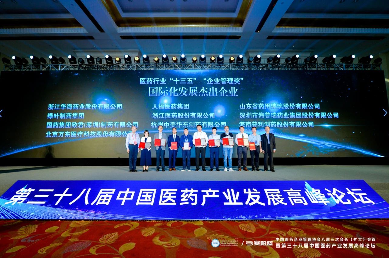 ? ? ? ?近日,由中國醫(yī)藥企業(yè)管理協(xié)會、中國非處方藥物協(xié)會主辦的第三十八屆中國醫(yī)藥產(chǎn)業(yè)發(fā)展高峰論壇在上海舉行。會議期間舉辦了醫(yī)藥行業(yè)“十三五”“企業(yè)管理獎”頒獎儀式,人福醫(yī)藥集團獲評國際化發(fā)展杰出企業(yè)獎。