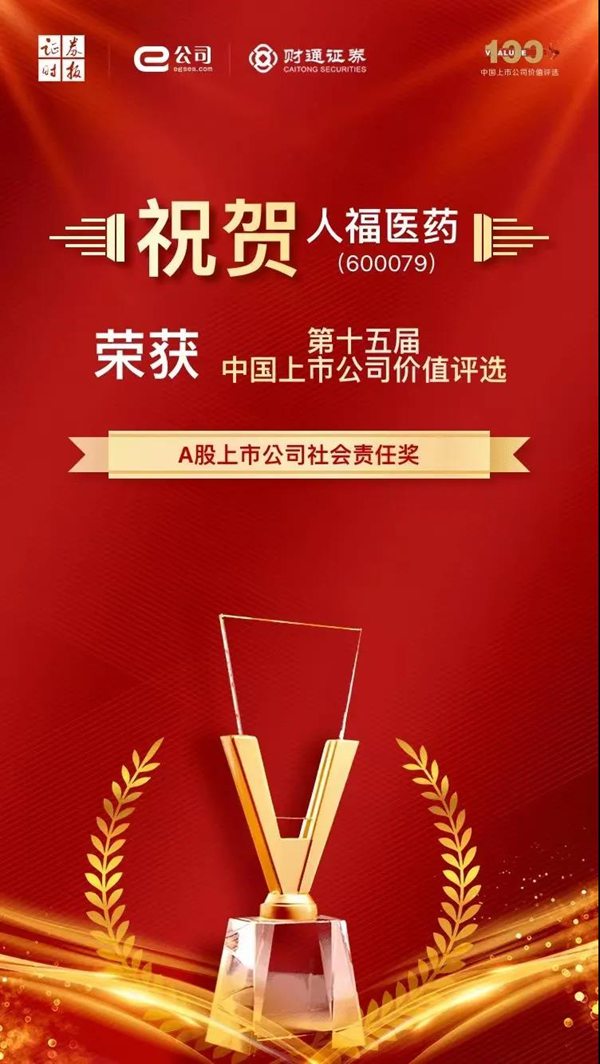 ? ? ? ?9月28日,由證券時報社主辦、財通證券特約協(xié)辦的“第十五屆中國上市公司價值評選”榜單揭曉,人福醫(yī)藥集團(tuán)榮獲“A股上市公司社會責(zé)任獎”。