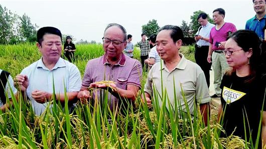 圖為:謝華安院士在黃陂多倍體水稻育種基地指導。(湖北日報全媒記者 夏中華 攝)
